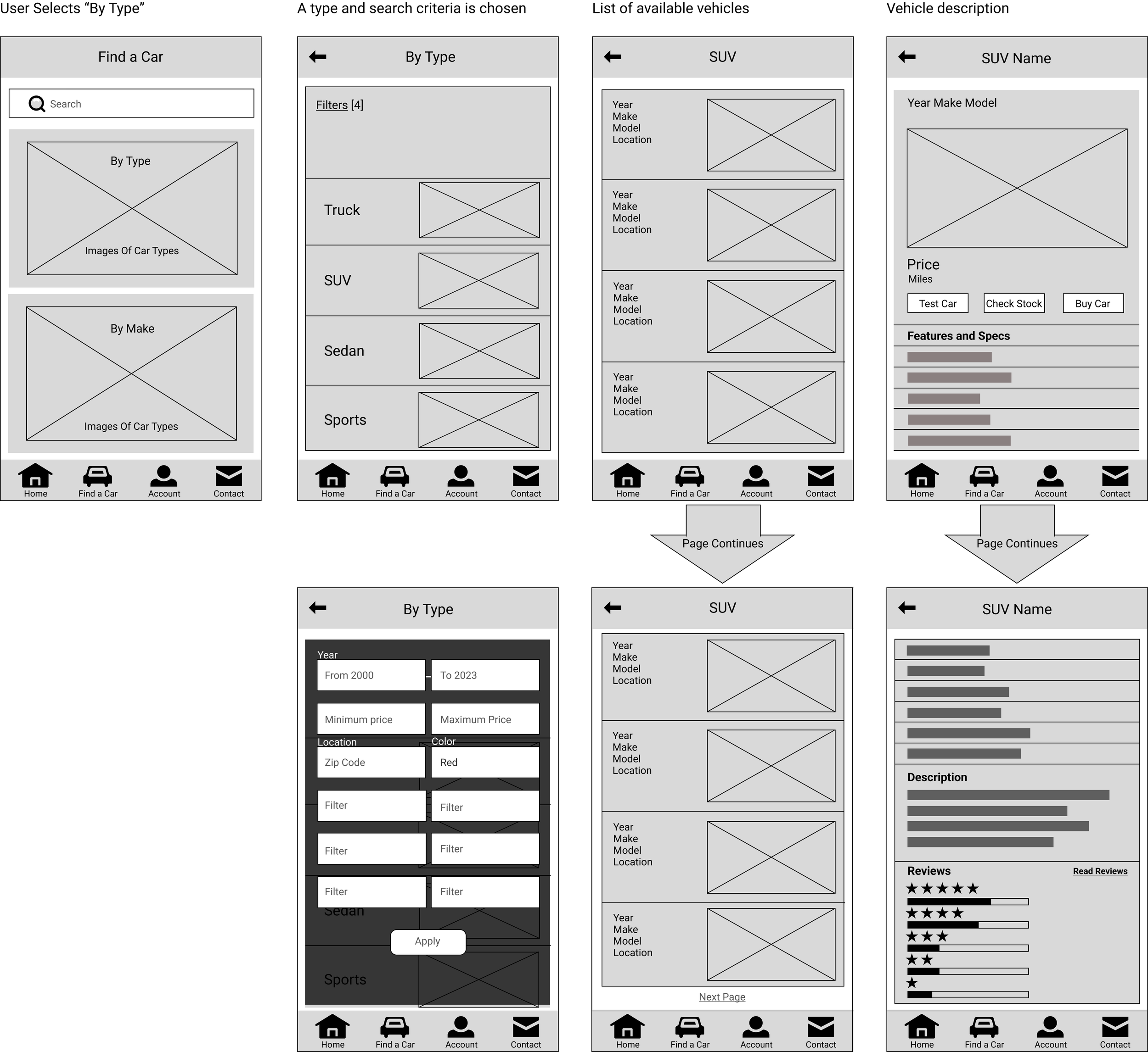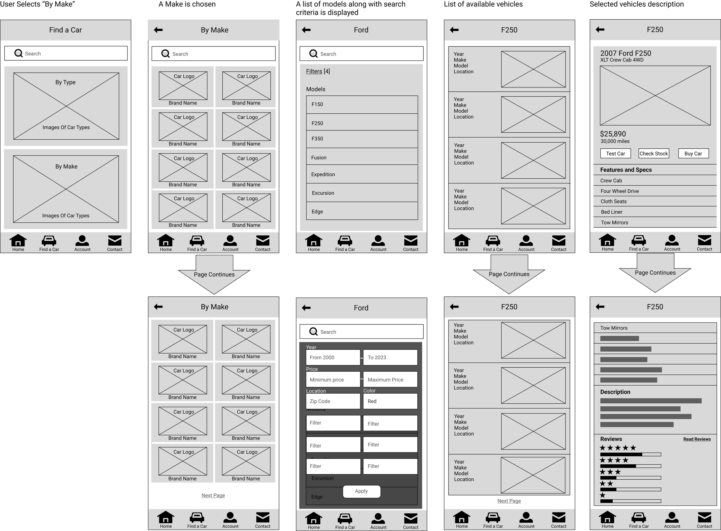Examining the competitors is a very important step. This helps to establish what people are used to seeing. I analyzed the big names in the industry. Carvana and Carmax.