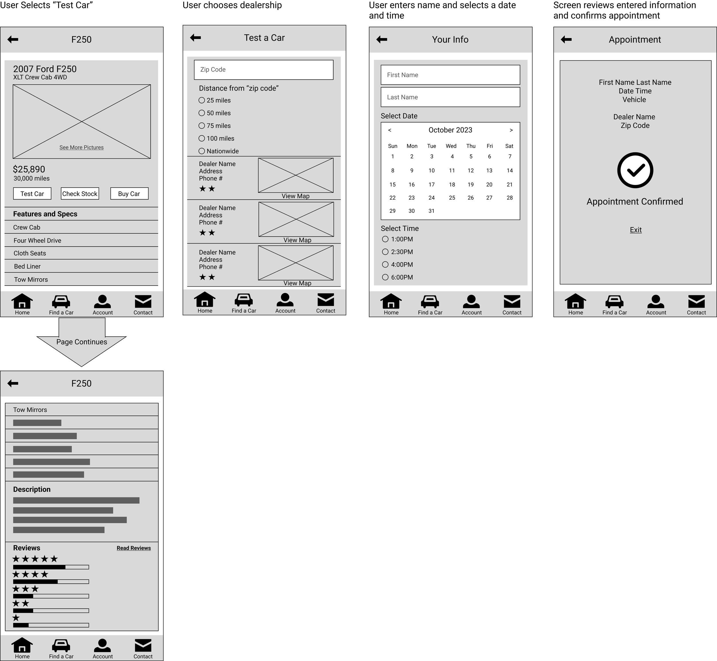 I utilized user interviews for this project, getting the information straight from the horses mouth would be very beneficial. When asked about their dealership experience one person revealed. “I was positively surprised in comparison to other dealerships that I had been a couple days prior that they really did not try to pull something off.”
