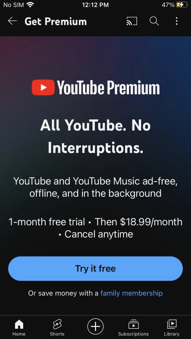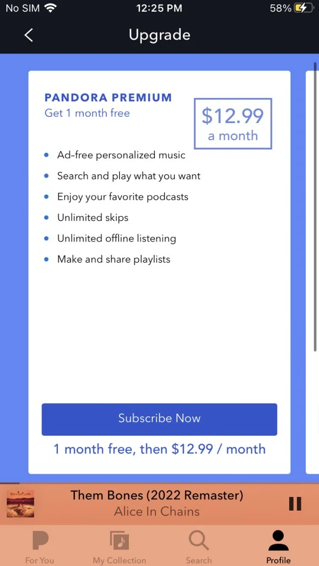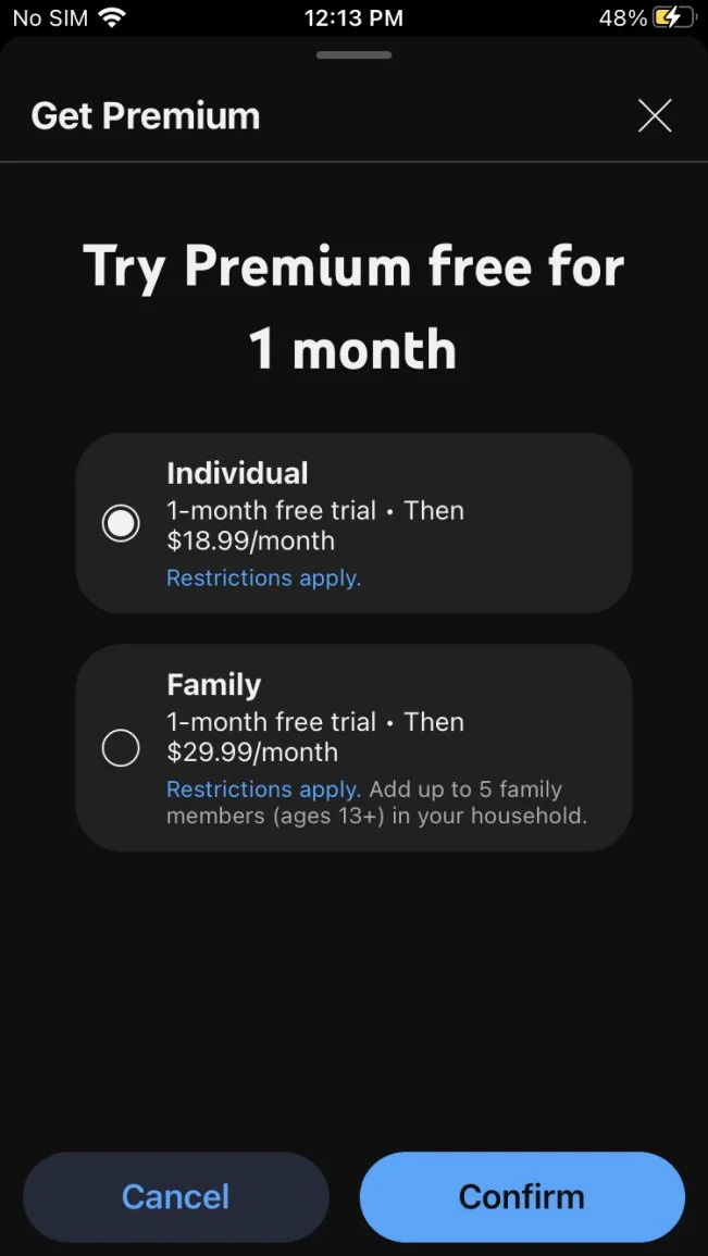 Subscription Flow: The user is placed on the media player screen and met with a subscription pop up. The user is then prompted to investigate the pop up. Each person seemed to navigate through the plan information and billing without issue.