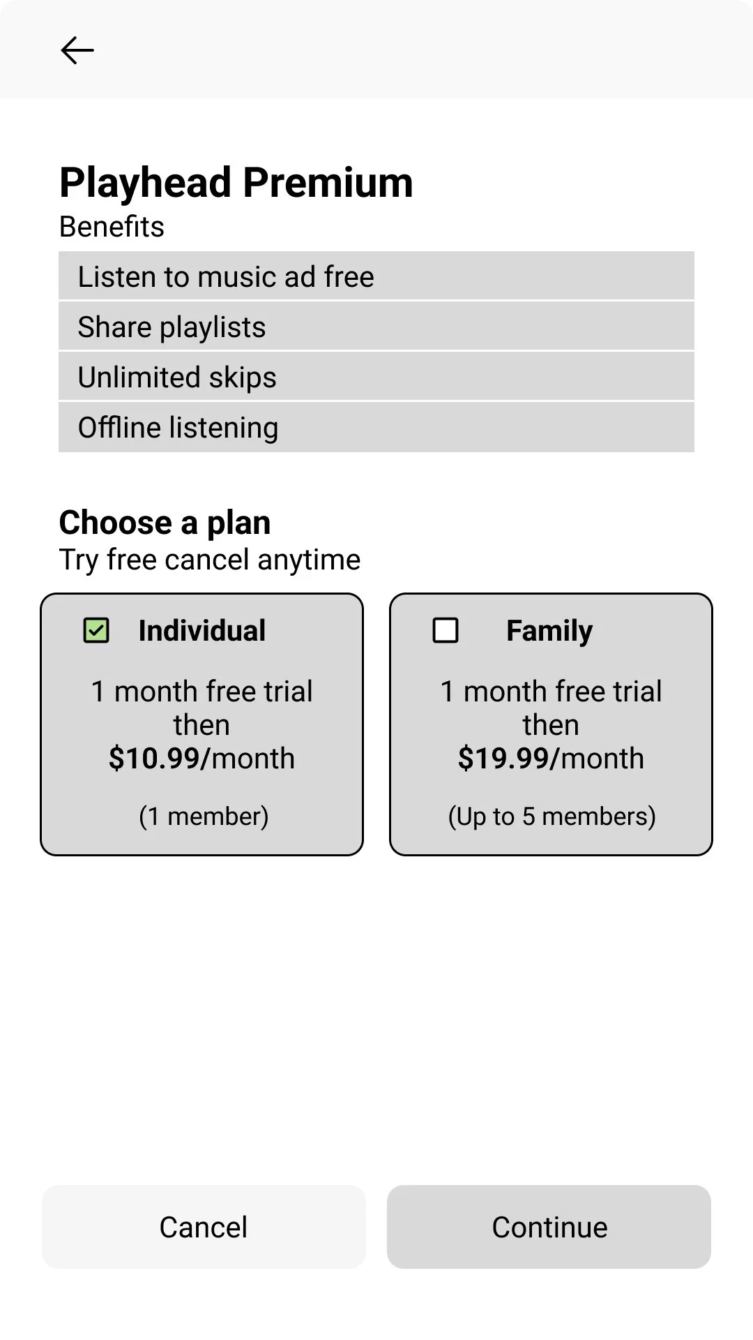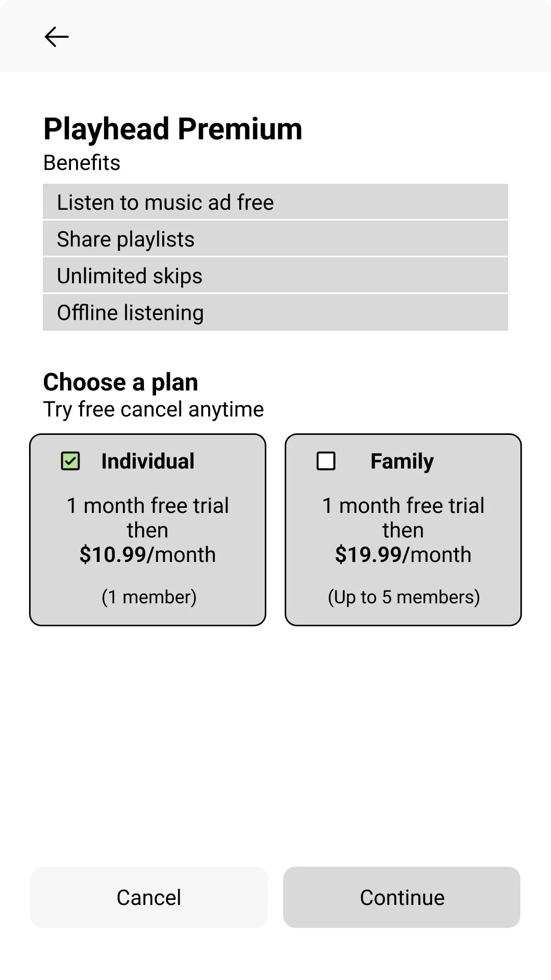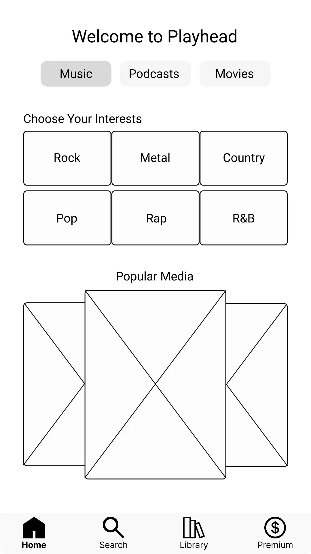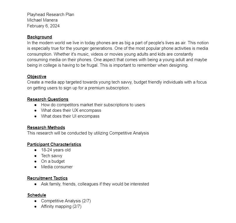 Playhead is a media app that features everything from music to podcasts and movies. Its target user base is young people 18-24 who are tech savvy, on a budget and frequently consume media. The main goal was to improve premium subscription sign ups.