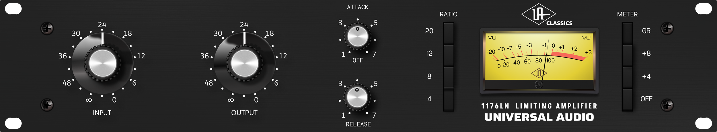 The Universal Audio 1176 is a staple of the audio engineering world. I have attempted to recreate this legendary compressor in all of its beauty. This recreation was done using a reference image of the original unit. I utilized a photorealistic style of interface design for this project.